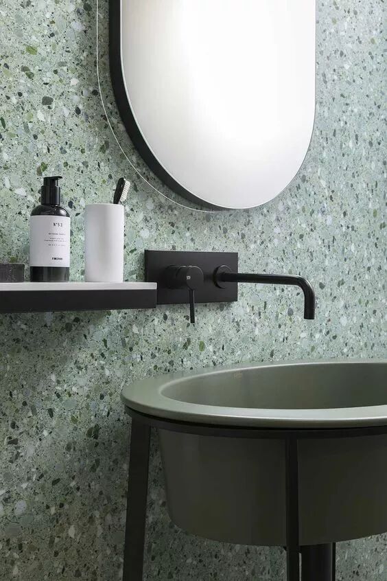 以绿色水磨石为主题的卫生间,似乎会有一种“总是这么干爽”的错觉。
